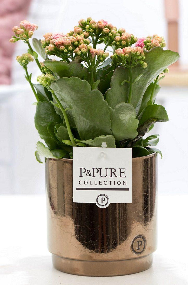 Kalanchoe Pink In P&PURE Juliette Ceramics Goldbronze - Ø12cm - ↕27cm