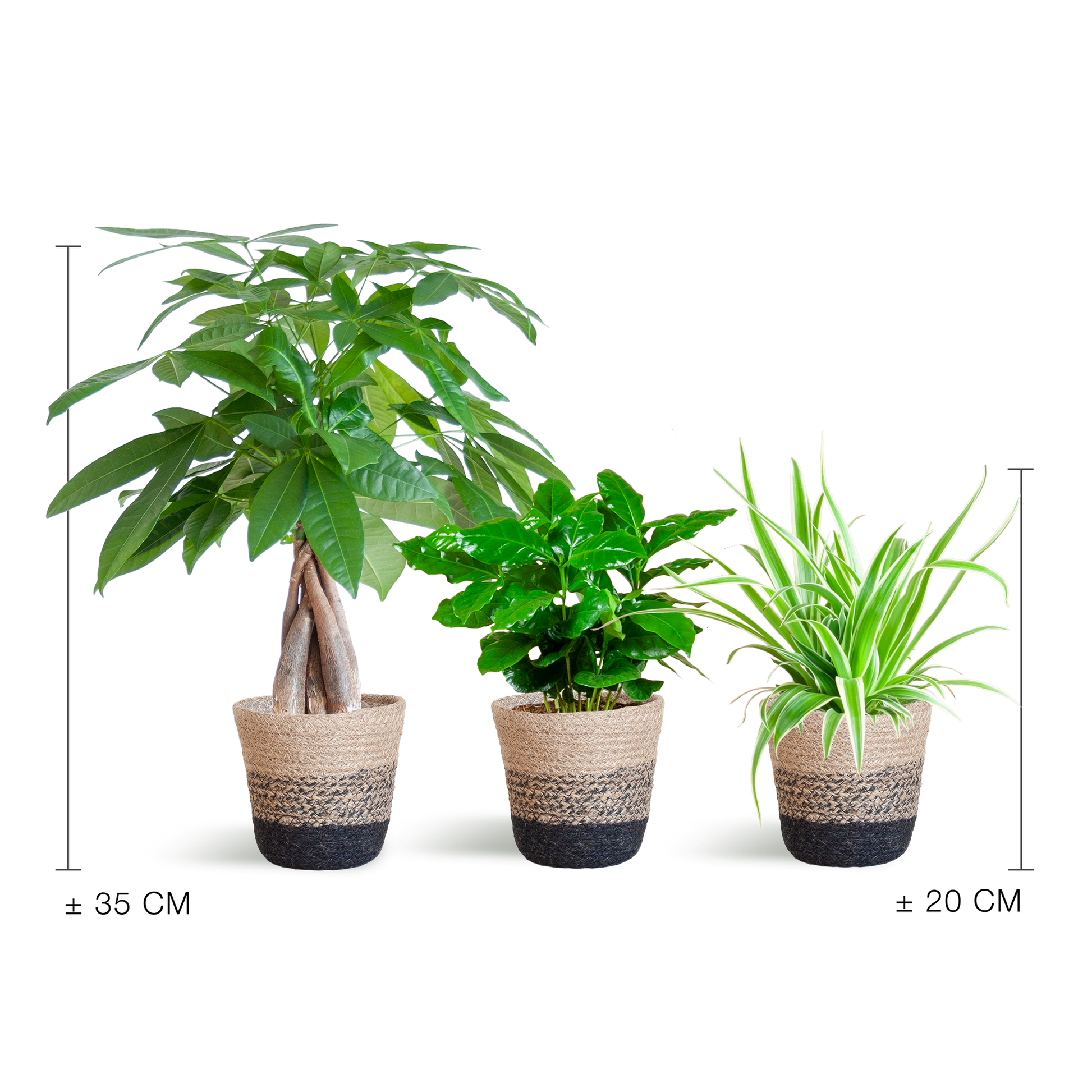 Diervriendelijke Plantenset (3x groene kamerplanten in meerkleurige mand)