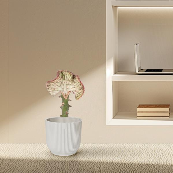 - De Euphorbia lactea Cristata, ook wel bekend als de 'Koraal cactussen', heeft een unieke, golfachtige vorm die doet denken aan koraal. De plant is helder groen van kleur en kan tot 30 cm hoog worden. De bladeren zijn dik en vlezig, wat zorgt voor een interessante textuur.