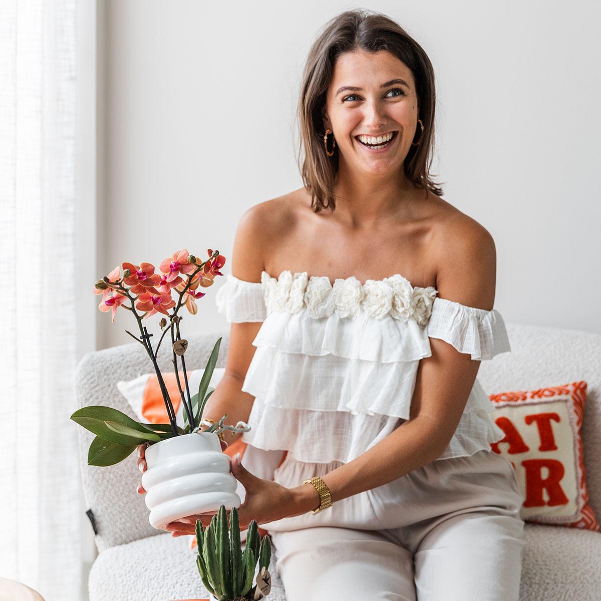 Geef jouw orchidee één keer per week water door de kweekpot onder te dompelen in het water. Laat de orchidee hierna goed uitlekken voordat je de kamerplant terug in de sierpot zet. Kies een lichte plek uit, maar niet in direct zonlicht, met kamertemperaturen tussen 18 en 21 graden. Zet de orchidee daarnaast niet in de buurt van een kachel of verwarming.