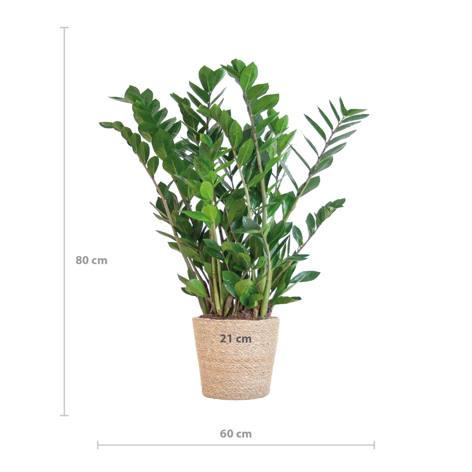 Zamioculcas Zamiifolia met Sofia mand naturel - 80cm - Ø21